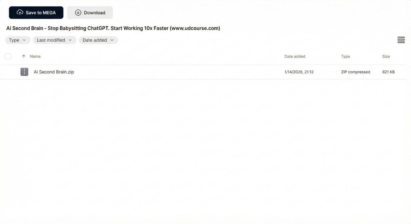 TL;DR: AI Second Brain teaches you to build a personal AI system that remembers your context, preferences, and projects. Stop repeating yourself to ChatGPT every conversation — create an AI assistant that knows your work and helps you move 10x faster. Includes 6+ hours of video training, custom GPT templates, Notion/Obsidian integration guides, and 30+ prompt frameworks. Originally $297, available here for a fraction of the cost.