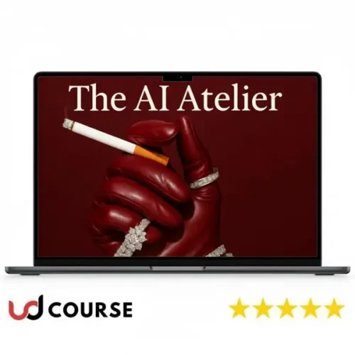 The AI Atelier is a 5-module course teaching AI design and video creation using Midjourney, GPT, Kling, and Sora, plus a complete system for getting paid clients. Includes prompt templates, DM scripts, contracts, and a Notion client portal.