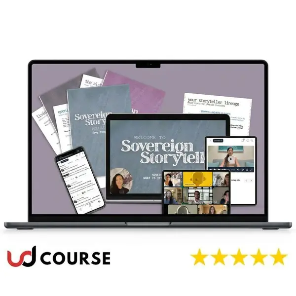 TL;DR: Sovereign Storyteller by Joey Yung-Jun Liu is a somatic, trauma-informed storytelling program for coaches, conscious creators, and paradigm shifting leaders. 7 modules of segmented video lessons, 7 aligned workbooks, a somatic practices vault, lifetime access, and an ongoing community. Strategies once reserved for 1:1 clients, now a self-paced curriculum.